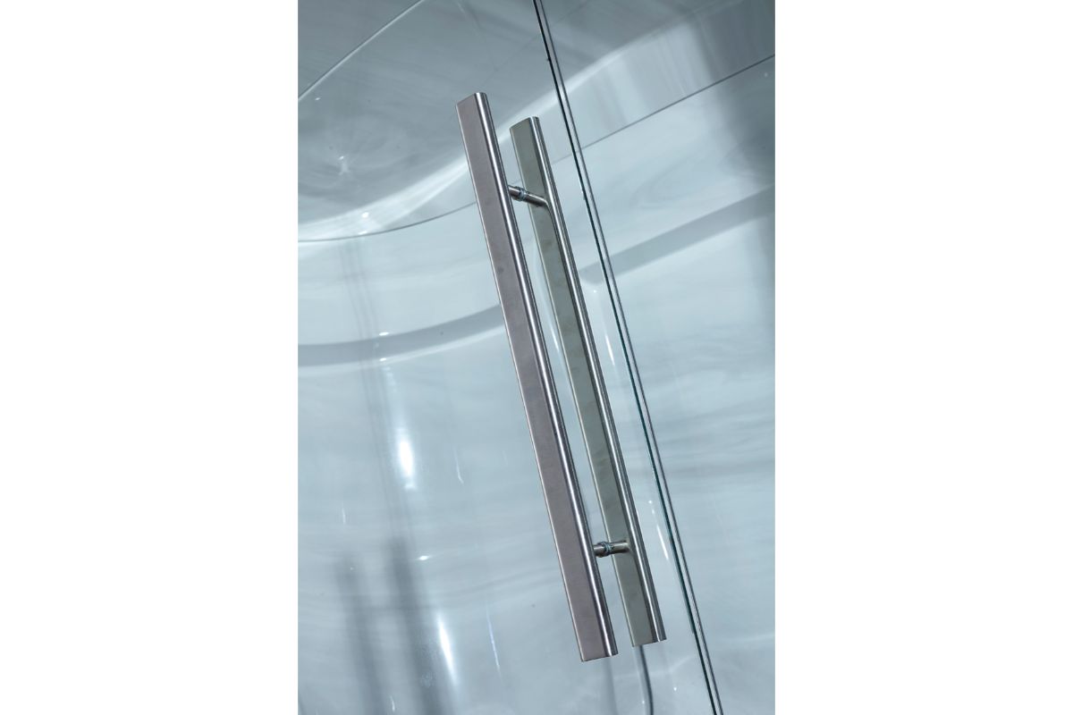vrata: 8 mm kaljeno steklo z ročajem in tečaji